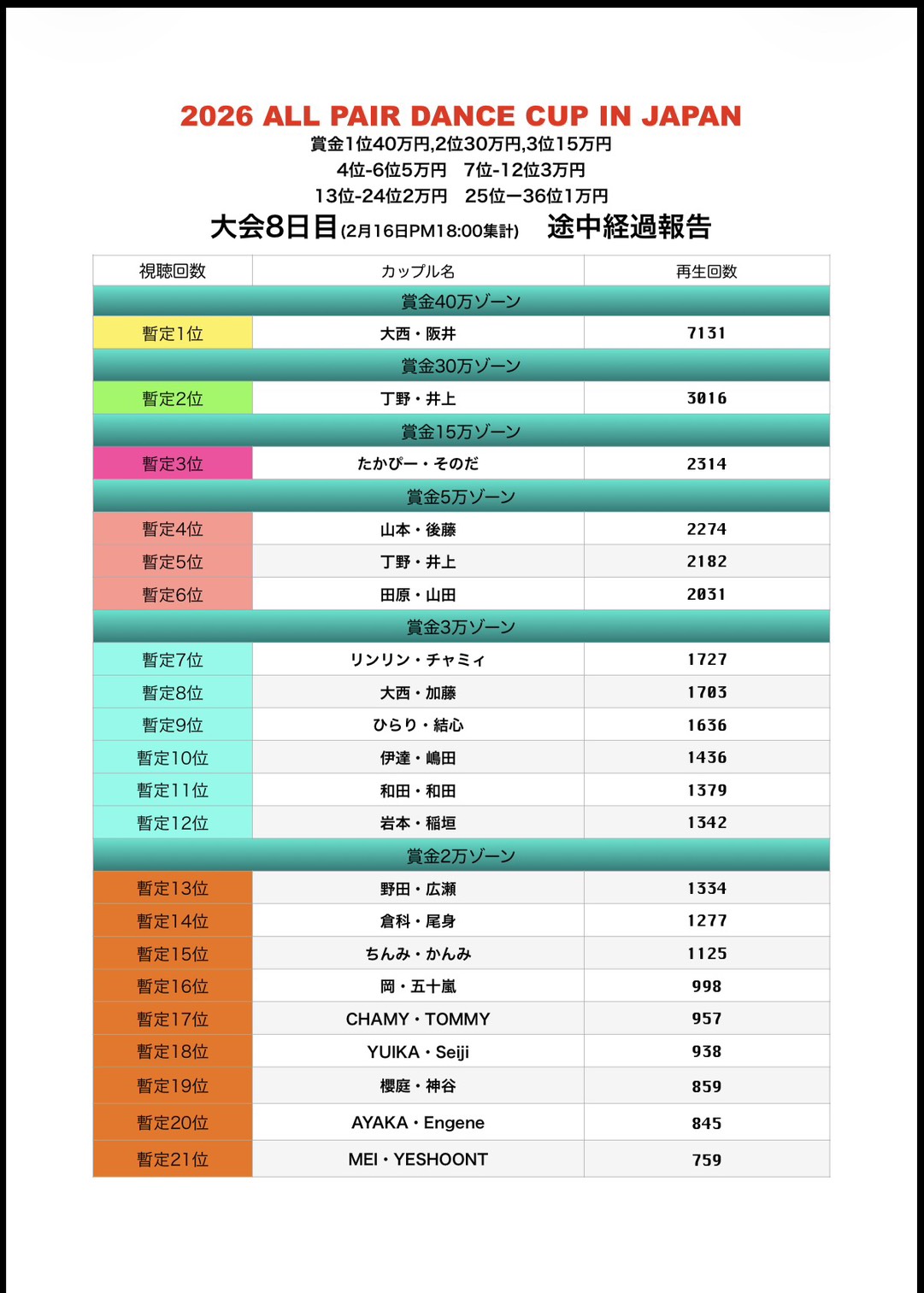 大会途中経過報告